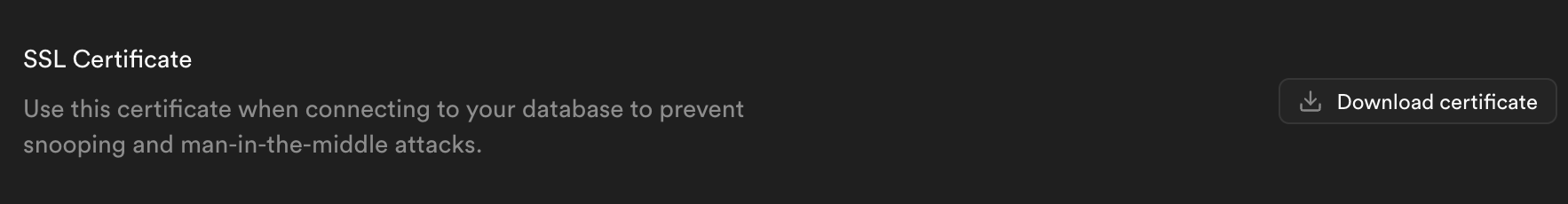 Download your SSL certificate from the Dashboard's Database Settings SSL