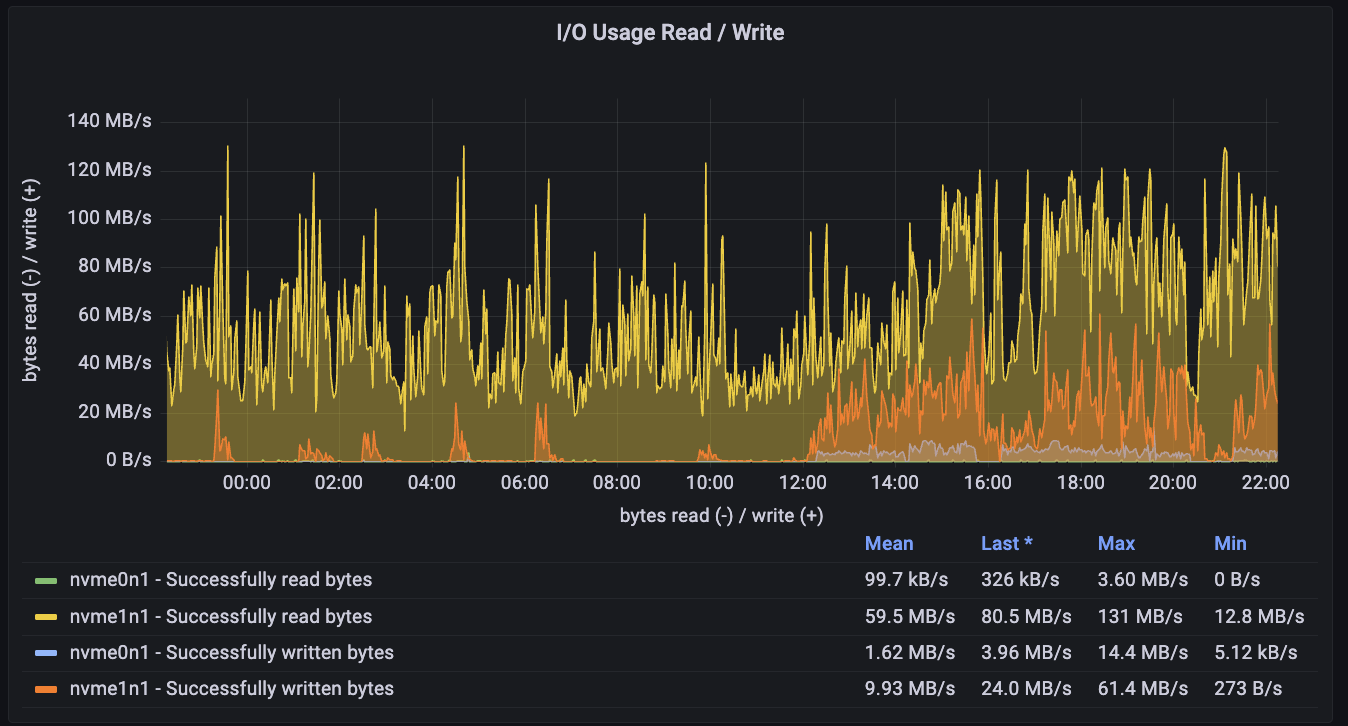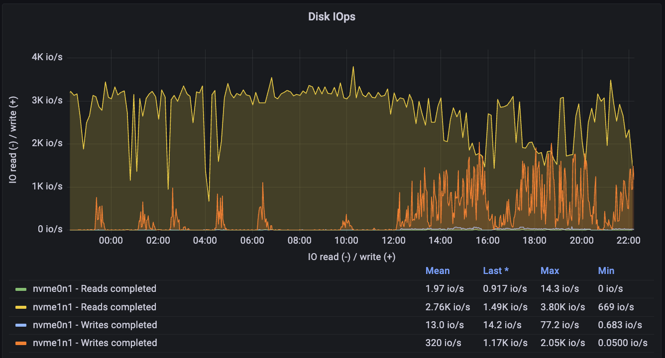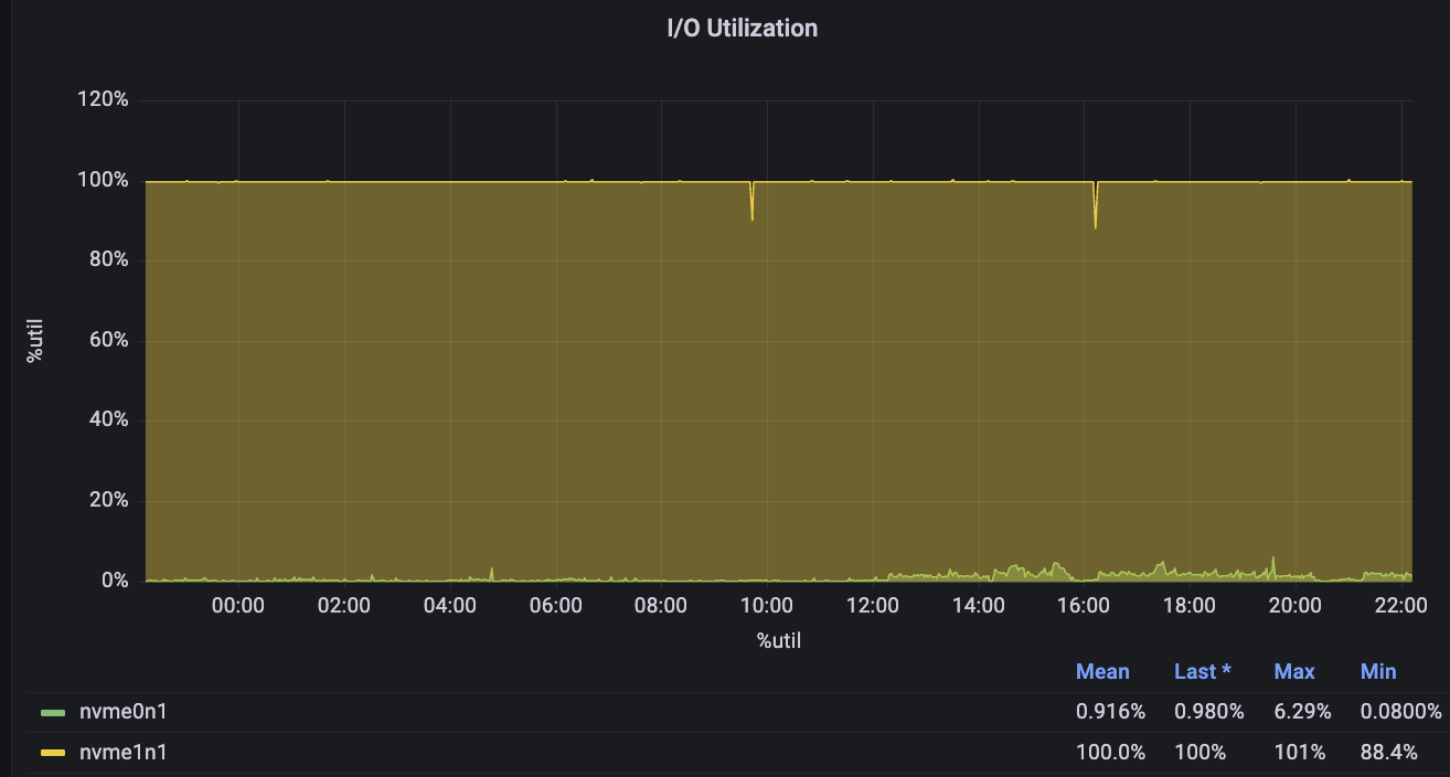 As a side-effect, its CPU is encumbered by heavy Busy IOWait activity: